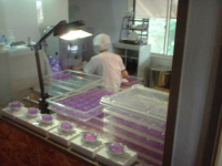 香水を作っているところ 透明なせっけんが作られているところ