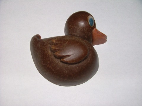 2004年1月に行いましたアンケートでのプレゼントでDuckieの型が当選されたららごさんが作られたDuckieのシャンプー用のヘナ&シアバタのオプション米油石けんです。クチバシ部分はモンモリロナイトレッド(クレイ)、目はウルトラマリーン&マンガンバイオレットを、白目は普通の石鹸で混ぜ込まれたとのことです。。 |