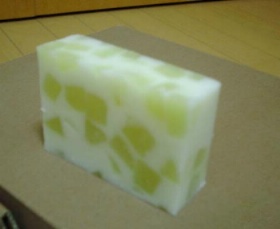| おいしそうなモザイクせっけん byみゅんさん パームカーネルオイルとアボガドオイルとみつろうで作った石けん生地をいれたモザイクせっけん。フルーツ入りヨーグルトのようなすてきなせっけんです。 (ログ#: 1212) |