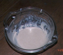 今回はとりあえずタネを仕込んで、20分間キッチリかき混ぜた。外出の用事があったので、5時間ほど、ラップをかけて外出したら、見た目が固まっていた。驚いてかきまわしたら、ただ一時的に分離していたようだった。でも、今までこんなことは一度もなかったのだが。またもや大不安。