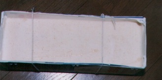 せっけんを型から出してみた。すこしねばねばしていたので、冷蔵庫に2時間いれてみた。実は「せっけんお役立ち情報」にも書いていたのだが、”冷凍庫”と”冷蔵庫”間違えていて、冷蔵庫にいれてしまったのだ。だが、かなり切りやすかった。これはポイントが高いかも。色は特製マルセイユせっけんにくらべると、かなり白い。