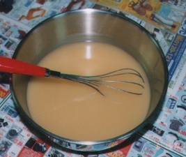 掲示板に白ワセリンを塗って、サランラップをはりつけてせっけんの素をいれるべきだったのですが、うまくサランラップがはりつかず、イライラしてとうとうそのままいれてしまいました。掲示板で教えてくださった方、ごめんなさい。