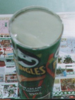 今回は大きめのプリングルスの筒にいれた。量がギリギリ