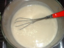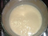 <マルセイユせっけんの水を半量にし、タネが型にいれる硬さになったら、水の半量分の牛乳をいれる、というもの>