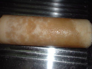 さて、いまだに型からだせないでいる卵せっけん。小麦胚芽をいれてかわいいせっけんになる予定でした...前回にまとめました牛乳せっけんほど悪夢ではありませんが、同日に作ったからでしょうか。結構失敗気味です。あと、この時期は保温のし過ぎに問題があるのでしょうか。今回は塩ビパイプにいれたのですが、一回の量が多すぎて入りきらず、プリングルスの箱に入れ、プリングルスのほうは保温しませんでした。すると、多少問題はありげですが、プリングルスのほうは特に問題がおきなかったのですが、塩ビパイプのほうは、同日に作った牛乳せっけんと同じように、昆虫の卵+油が染み出ている状態です。