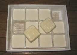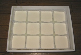 1. 100円ショップを活用し、タッパやいろいろな型をいれてみる。型出しは上記と同じで、ワセリンを底に塗ったり、冷凍庫にいれて出すとやりやすい。また、タッパのほうが保温力が高まり、よりけん化が進むとのご意見も頂きました。実際の私のせっけん製作でも使用してみましたので、そちらもご覧ください。